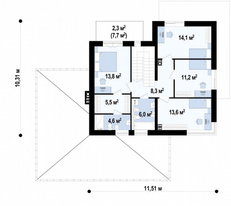 Просторная планировка: Дом "Modern 204" предлагает удобную и эргономичную планировку, которая включает в себя пять спален, что идеально подходит для большой семьи. Каждая спальня спроектирована с учетом комфорта и приватности.