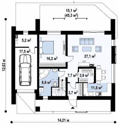 Плоская крыша: Подчеркивает современный стиль дома и позволяет использовать пространство крыши для создания террасы или зоны отдыха .