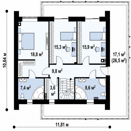 Гибкая планировка: Возможность выбора между 3 и 4 спальнями позволяет адаптировать проект под нужды вашей семьи .