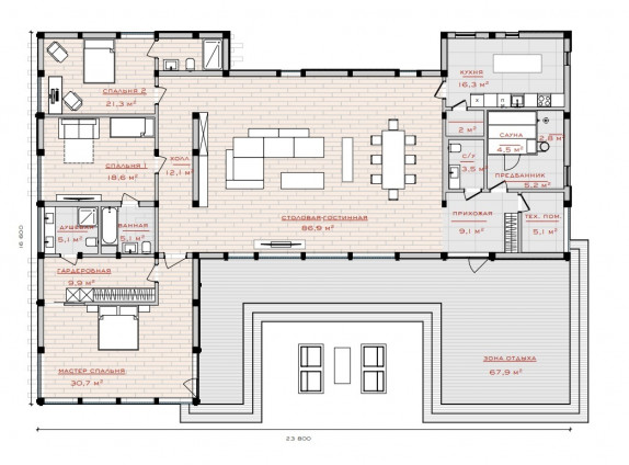Общая плошадь 338 м2