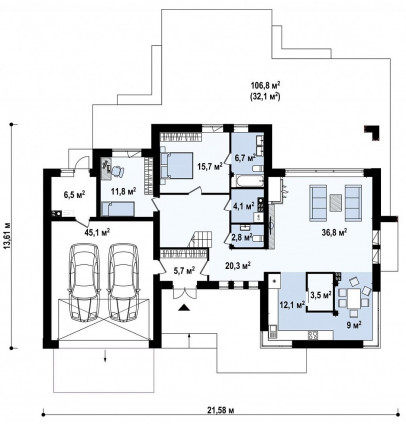 Архитектурный стиль Hightech, в котором выполнен этот проект, характеризуется использованием современных материалов и внедрением высоких технологий в строительство. Дом "Hightech 330" выделяется не только внешним обликом, но и функциональными особенностями. Просторные жилые помещения, включая четыре спальни и гостиную, обеспечивают комфорт для большой семьи. К тому же, благодаря открытому планированию, каждая зона наполнена воздухом и светом, что создает уютную атмосферу.