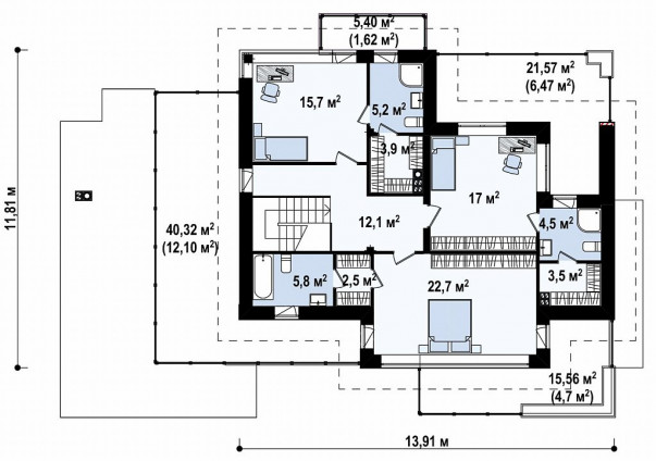Проект дома "Hightech 330" — это воплощение современного подхода к архитектуре, который идеально сочетает функциональность и эстетику. Этот стильный дом с общей площадью 330 квадратных метров и двумя этажами станет идеальным местом для комфортной жизни. На первый взгляд, выразительная архитектура привлекает внимание благодаря гармоничным линиям и неожиданным контрастам. Фасад дома объединяет текстуры легкого бетона и теплого дерева, создавая уникальный визуальный эффект, который гармонирует с окружающей природой. Панорамные окна и балкон с удобной террасой наполняют пространство светом и создают ощущение единства с природой.