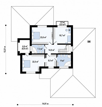 Двухэтажная конструкция: Оптимальное использование пространства участка, позволяющее разместить все необходимые помещения на относительно небольшой площади .